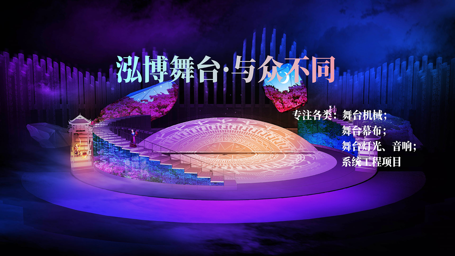 江蘇泓博舞臺(tái)設(shè)備科技有限公司  江蘇泓博舞臺(tái)設(shè)備科技有限公司坐落于美麗的揚(yáng)子江畔——泰州市。公司生產(chǎn)基地設(shè)在國(guó)家中藥養(yǎng)生小鎮(zhèn)——大泗,距離泰州高速出口大泗出口1.5公里,交通便捷。泓博公司是國(guó)內(nèi)較早從事舞臺(tái)機(jī)械設(shè)計(jì)制造安裝的專(zhuān)業(yè)公司。  泓博以發(fā)展文化產(chǎn)業(yè)為已任,多年來(lái)以求新務(wù)實(shí)的步伐走出一條技術(shù)創(chuàng)新、產(chǎn)品創(chuàng)新、管理創(chuàng)新、品牌創(chuàng)新的發(fā)展足跡,在企業(yè)轉(zhuǎn)型升級(jí)的道路上向設(shè)計(jì)研發(fā),生產(chǎn)制造、安裝調(diào)試及售后服務(wù)一條…